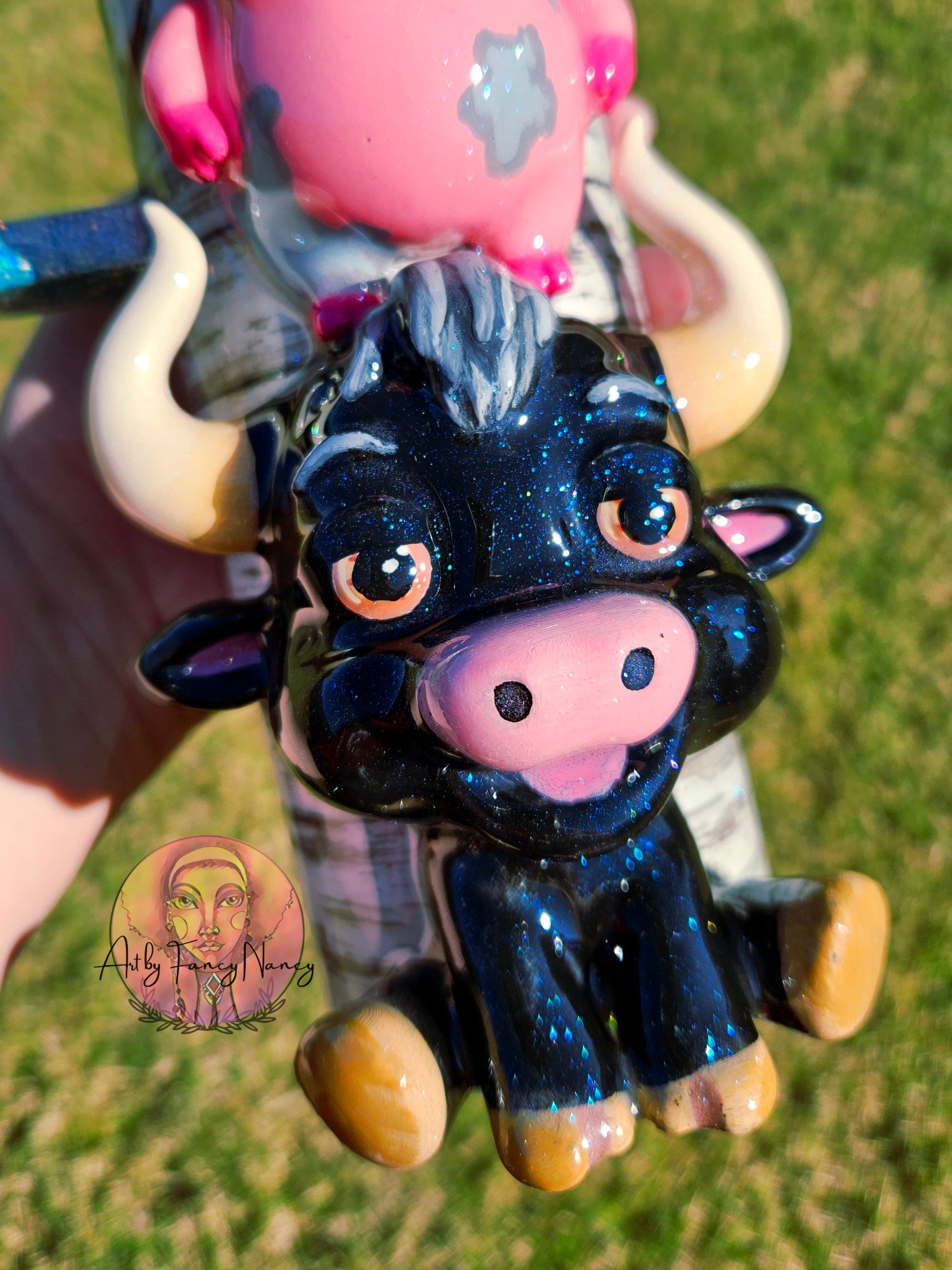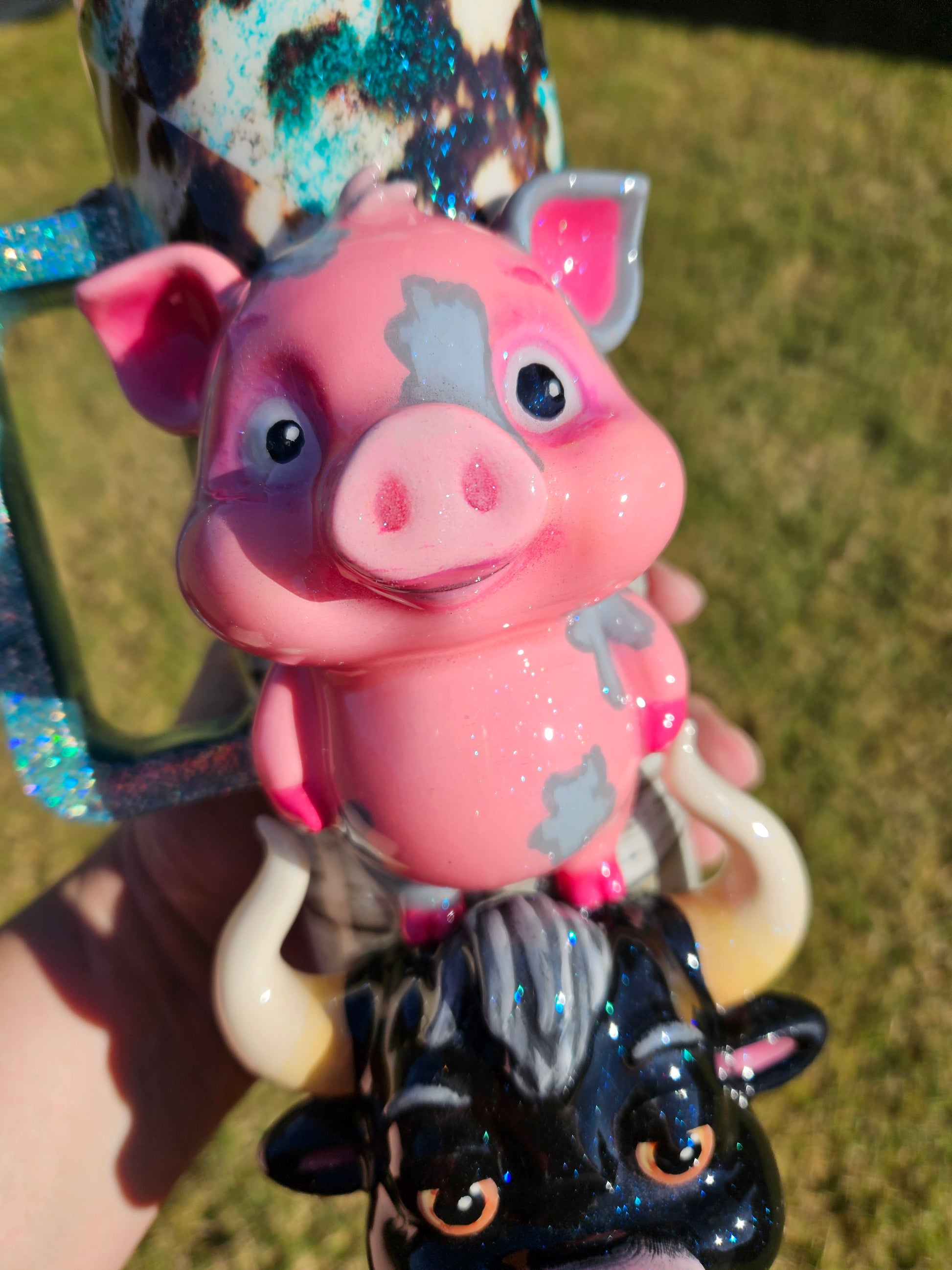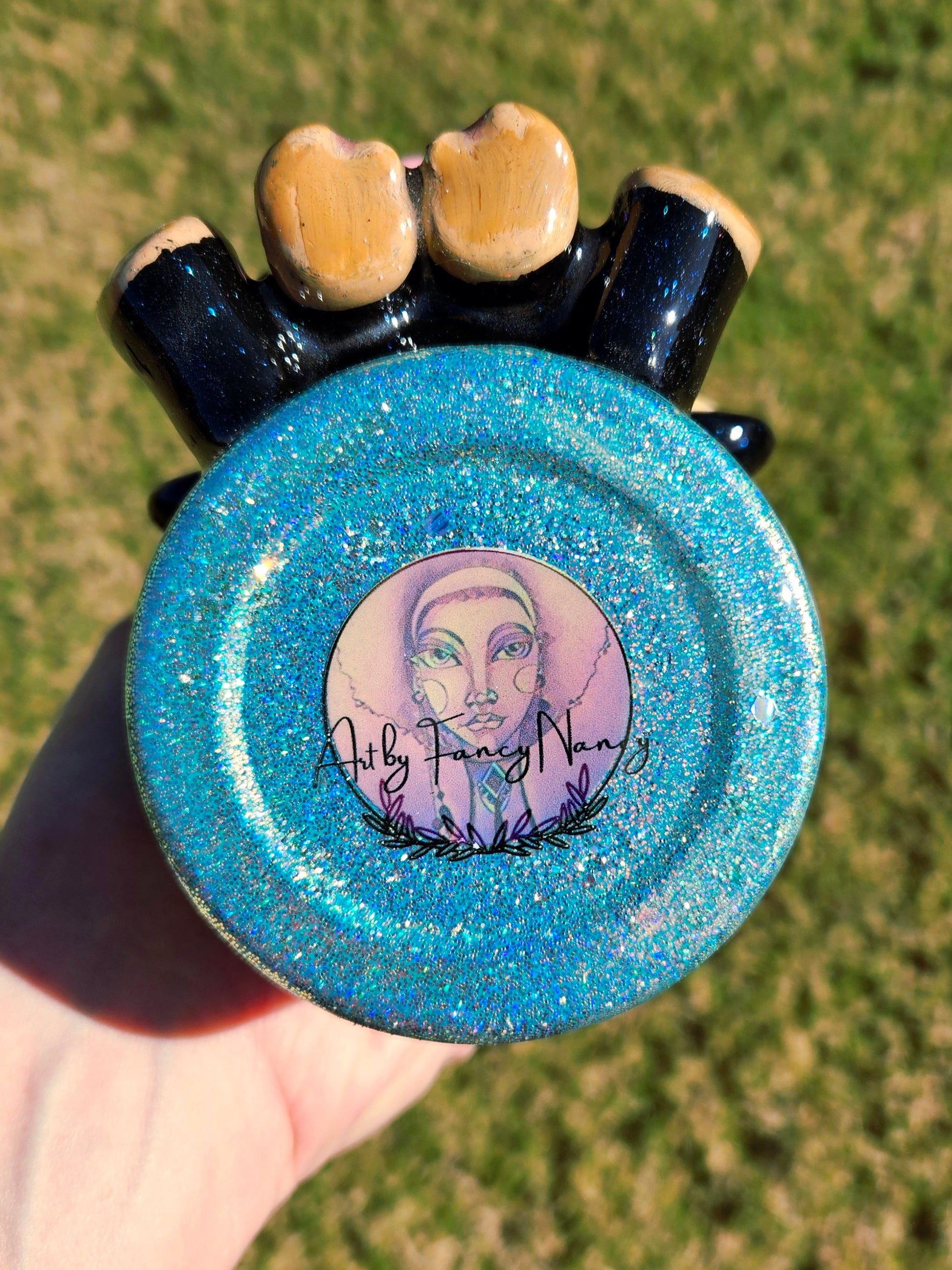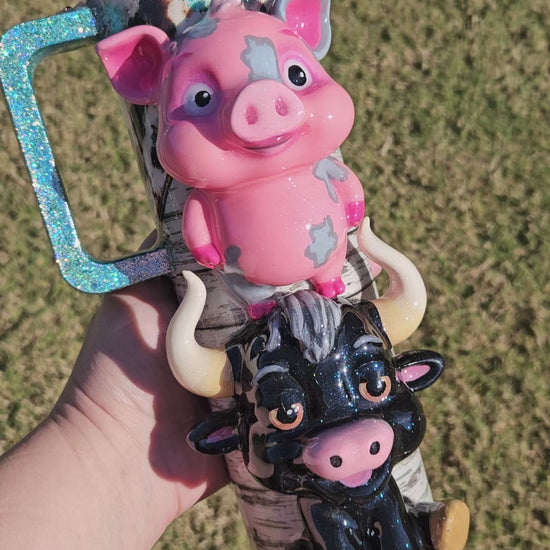 This handmade tumbler is crafted using c3D items, paint, vinyl, glitter and epoxy resin, and features a double-walled stainless steel design for durability. To preserve its quality, we recommend handwashing only. Please avoid exposing the tumbler to extreme heat or cold, as this may affect the resin. Additionally, do not soak in water to maintain its longevity.